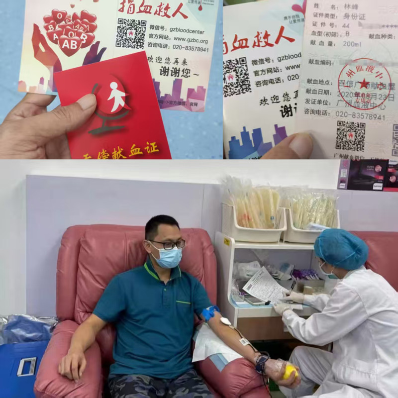 广东揭阳患病老人数次网络求助B型阴性血,中希网林峰先后四次组织志愿者献血帮助,自己也两次从深圳赶往揭阳血站为老人献血。也是他本人第17次献血救助患者。